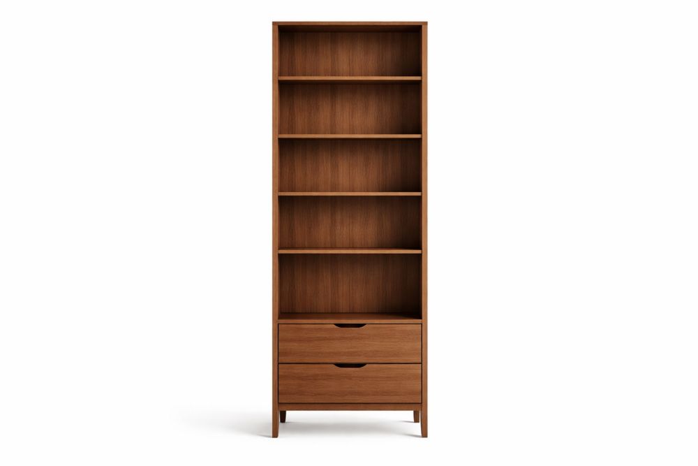 Bibliothèque haute en bois massif avec étagères et tiroirs