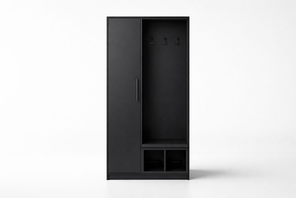 Armoire de Rangement Noire en Panneaux De Particules avec Portes et Crochets