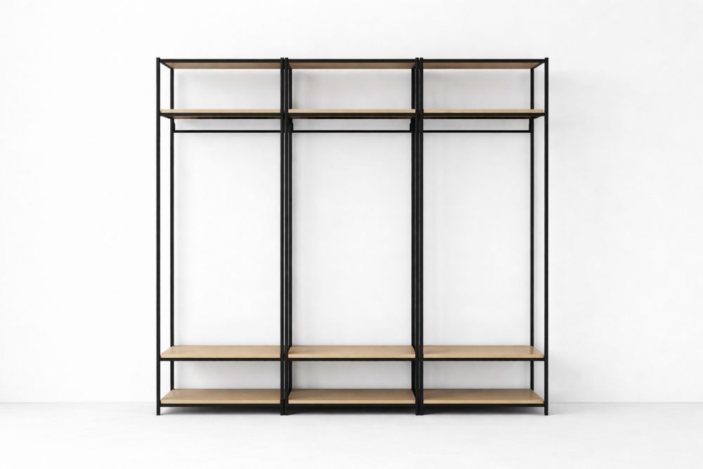Portant vêtements acier noir et étagères en bois massif